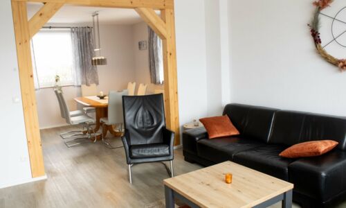Esszimmer mit Tisch und 6 Stühlen (erweiterbar um einen Kinderstuhl)